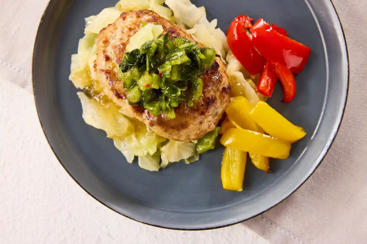 「少しずついろいろなものを楽しみたい」「一品でしっかり満足したい」というニーズに応え、企画者の地元、広島県ならではの食材・広島菜漬の美味しさを生かしたハンバーグ。ソースには、牡蠣だし醤油に、レモン果汁・大根おろし・だし・砂糖を加え、和風仕立てにしました。近年よく耳にする“タイパ”という価値観にも着目し、一品で野菜もお肉も味わえ、主食を足すだけで食事として完結する惣菜“タイパSOZAI”を目指しました。 |