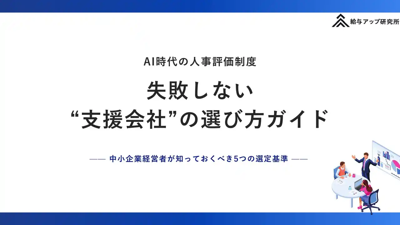 株式会社給与アップ研究所(東京都渋谷区、代表取締役:高橋恭介)は、AI時代における人事評価制度の本質と、失敗しない支援会社の選び方をまとめた実務資料「AI時代の人事評価制度 失敗しない“支援会社”の選び方ガイド」を公開しました。 |