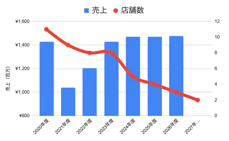 | 人口減少と市場の成熟化が進む中、英國屋はあえて「店舗数を削減しながら売上を伸ばす」という、従来の小売業の常識を覆す戦略を断行しました。 | |||||||||