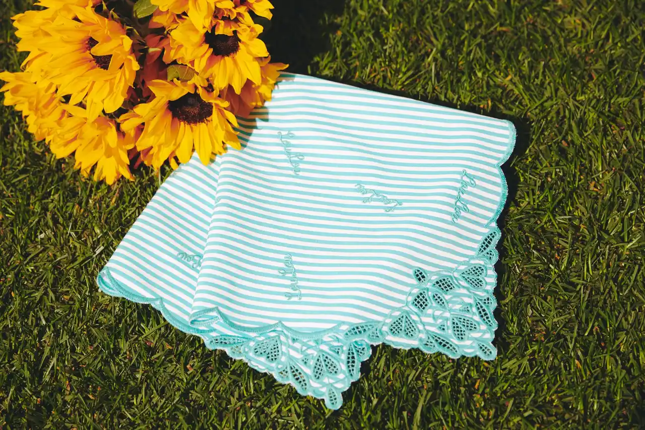 | 期間中、合計¥66,000(税込)以上お買い上げいただいたお客様に、初夏を彩る華やかなデザインに繊細なレースと刺繍ロゴをあしらった「エンブロイダリーハンカチーフ」を差し上げます。 | ||||||||||||||