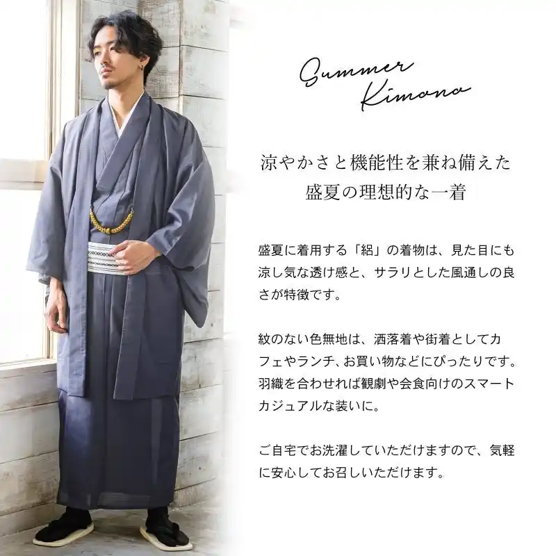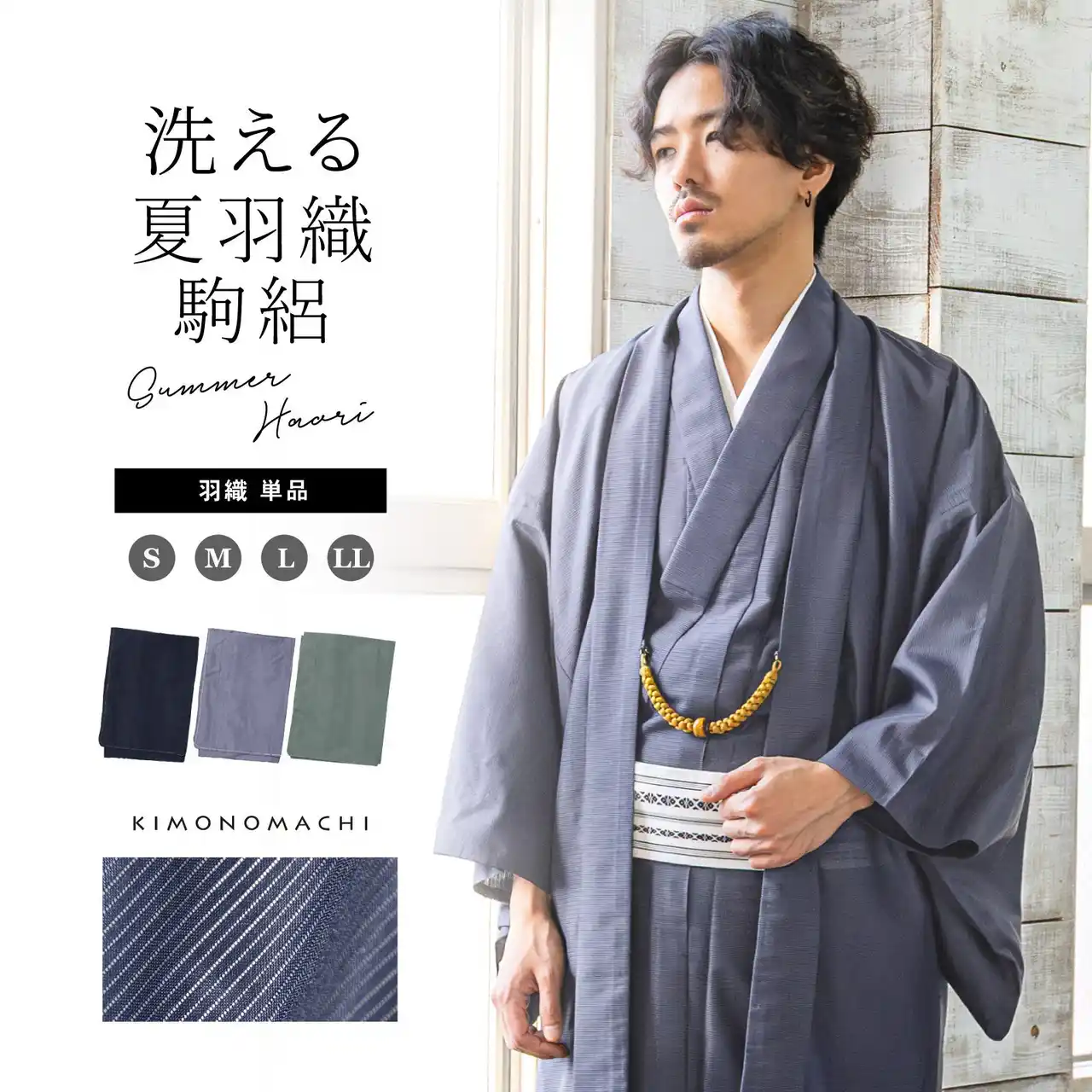 | 豊彩株式会社の子会社である京都発の和装ブランドKIMONOMACHI(有限会社京都きもの町、京都府京都市、代表取締役:久保村一文)は4月28日、和装通販ショップ「京都きもの町」にて、オリジナル商品の「洗える夏着物駒絽」を新発売します。これまで人気の高かった洗えるメンズ着物シリーズに、待望の夏向け「絽」生地の単衣仕立てが登場。ご自宅で洗える手入れのしやすさとS~LLまでの豊富なサイズ展開で、男性の夏のお洒落やキモノライフを快適にサポートします。オンラインストアにて4月28日より販売開始です。 | ||||||||||||