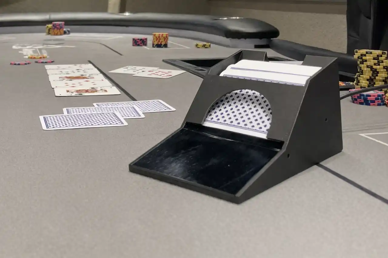 | このシステムでは、デックシュー型のRFIDリーダーを用いることで、配られるカードを自動で読み取り、ハンド情報を正確に取得することを実現してきました。 | |||||||||||||