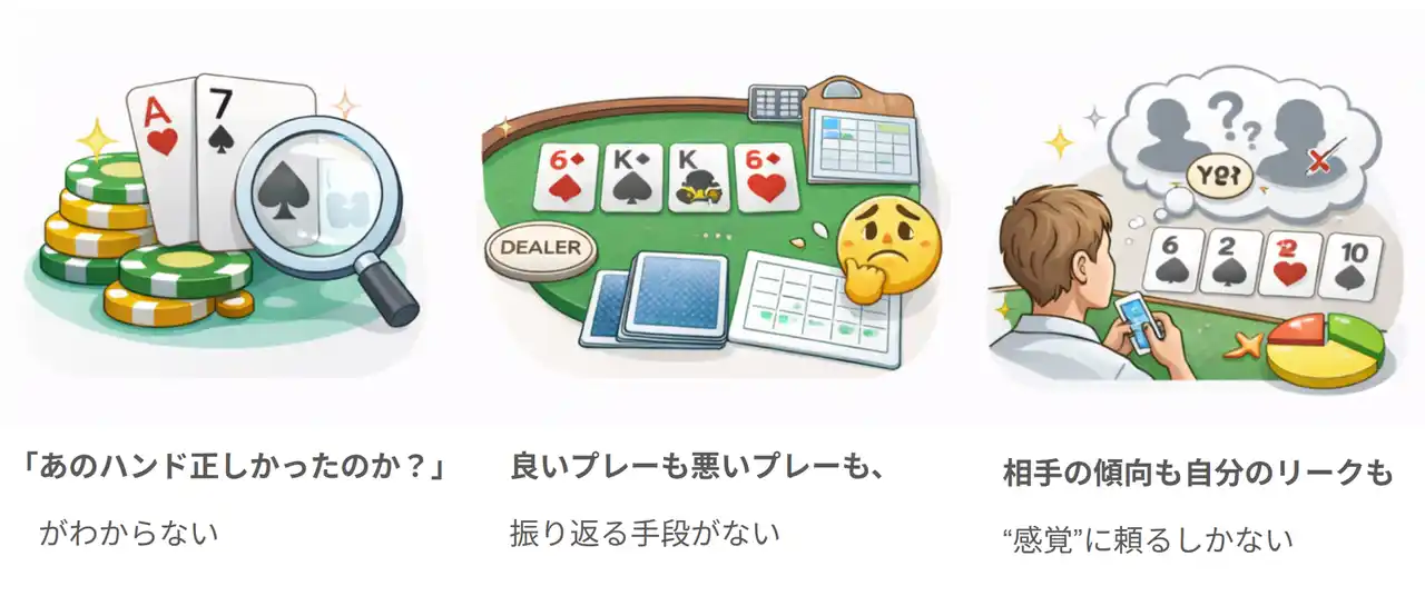 | といった判断を、実際のハンド履歴をもとに検証できるようになります。 | |||||||||||||