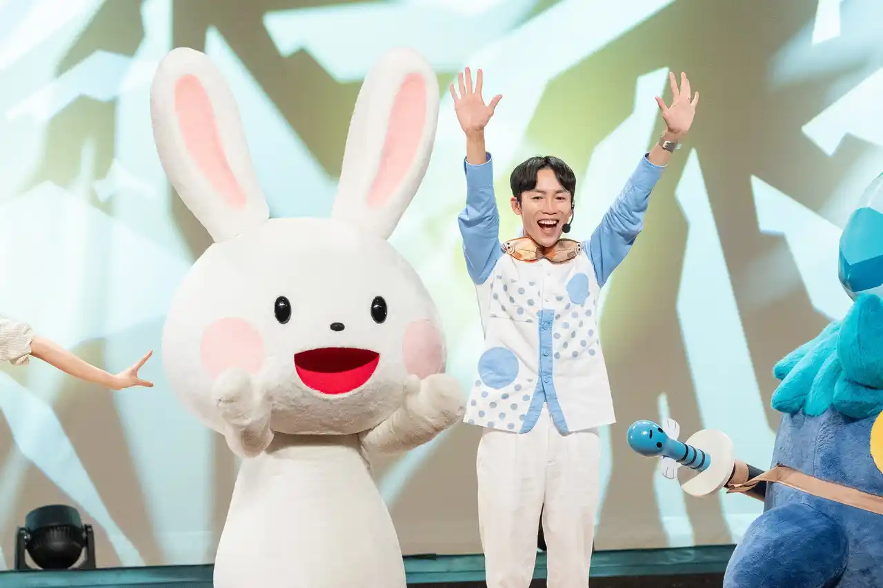 はみがきうさぎやロクローによる歌やダンスに引き続き、スペシャルゲストとして「さかなのおにいさん かわちゃん」がステージに登場すると、会場には拍手が沸き起こりました。 |