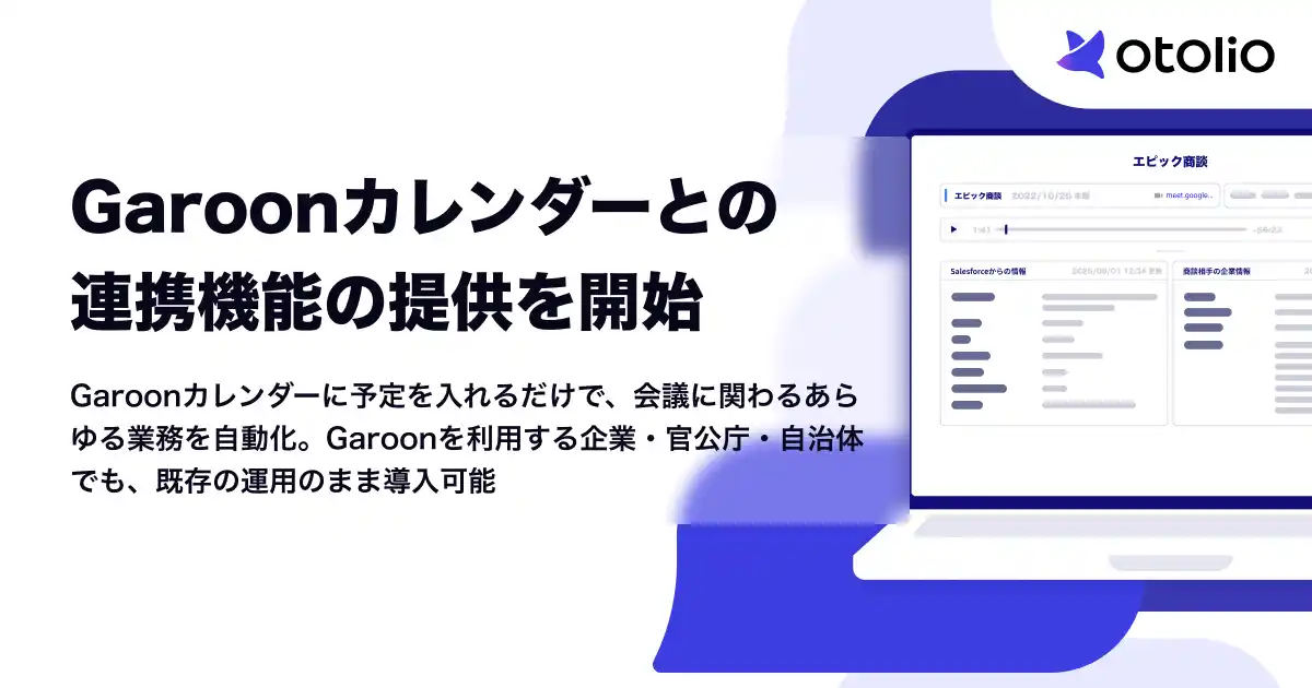 エピックベース株式会社(本社:東京都品川区、代表取締役:松田崇義)は、議事録作成などの会議に関わるあらゆる業務を自動で実行するAIエージェントサービス「Otolio」において、サイボウズ株式会社が提供するグループウェア「Garoon」のカレンダーとの連携機能の提供を開始いたしました。 |