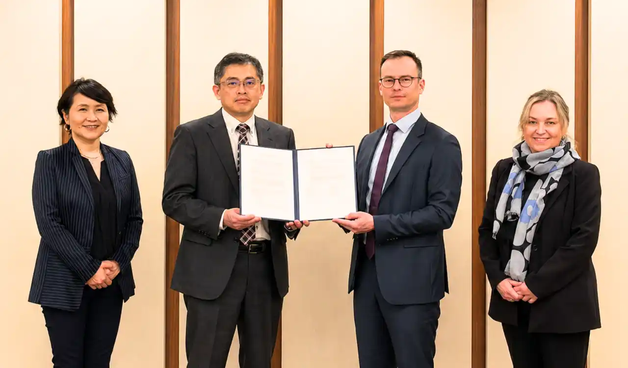 左からEFT 取締役 飯田 百合子、代表取締役社長 鈴木 裕士、VTT Vice President Antti Arasto氏、Sales and Customer Partnerships, Customer Account Lead Kirsi Kotilainen氏 |