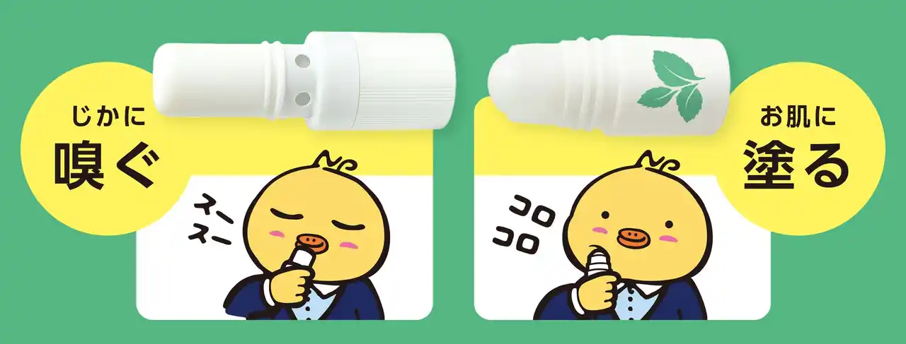 直接嗅ぐ方法と、鼻に塗布する方法の2通りで使用でき、シーンに応じた使い分けが可能 |