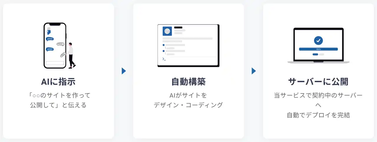 一方で、AIエージェントを活用してWebサイトを制作する場合でも、公開までには必要な設定や作業手順を整理しながら進める必要があり、特に制作やサーバー設定に不慣れな方にとっては負担となるケースがありました。 |