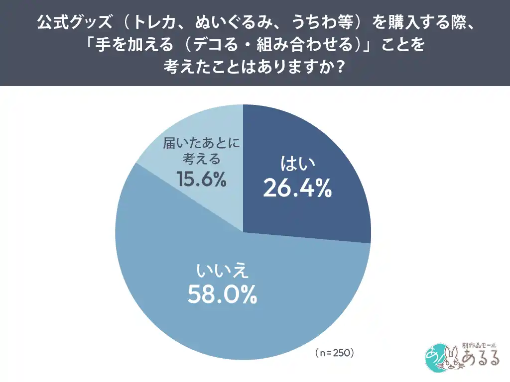 「公式グッズを購入する際から、手を加えることを考えているか」を尋ねたところ、 |