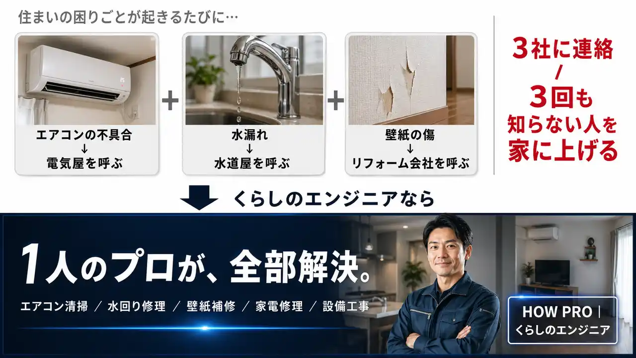 清掃だけでなく、修理・設備工事まで1人で対応できる多能工は、消費者にとっての「住まいのかかりつけ」であり、エンジニア自身にとっては事業継続リスクを最小化し、安定的な収益基盤を生み出す最大の武器になります。 |