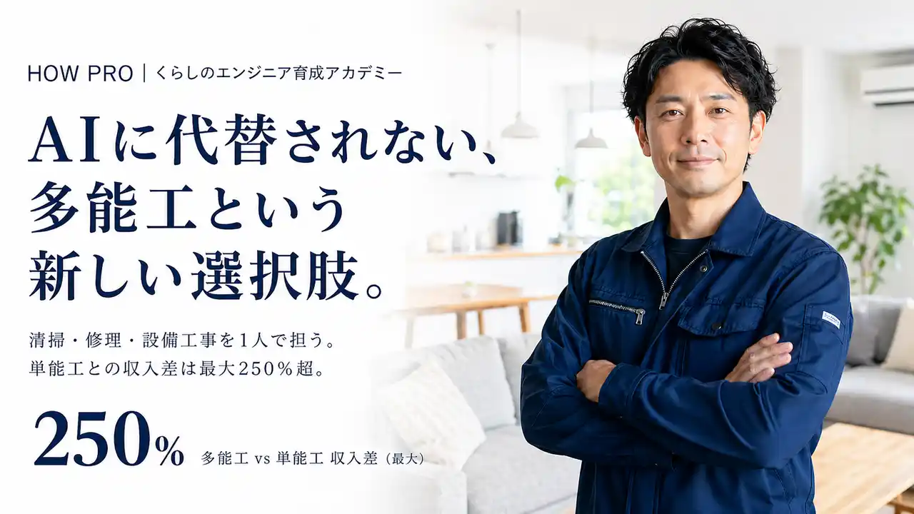 株式会社志事人(本社:東京都中央区銀座、代表取締役:鶴原利彦)が運営する訪問サービス専門アカデミー「HOW PRO(ハウプロ)」は、ハウスクリーニングを起点に家電修理・原状回復・設備工事まで1人で対応できる多能工人材「くらしのエンジニア」の育成を本格化する。 |