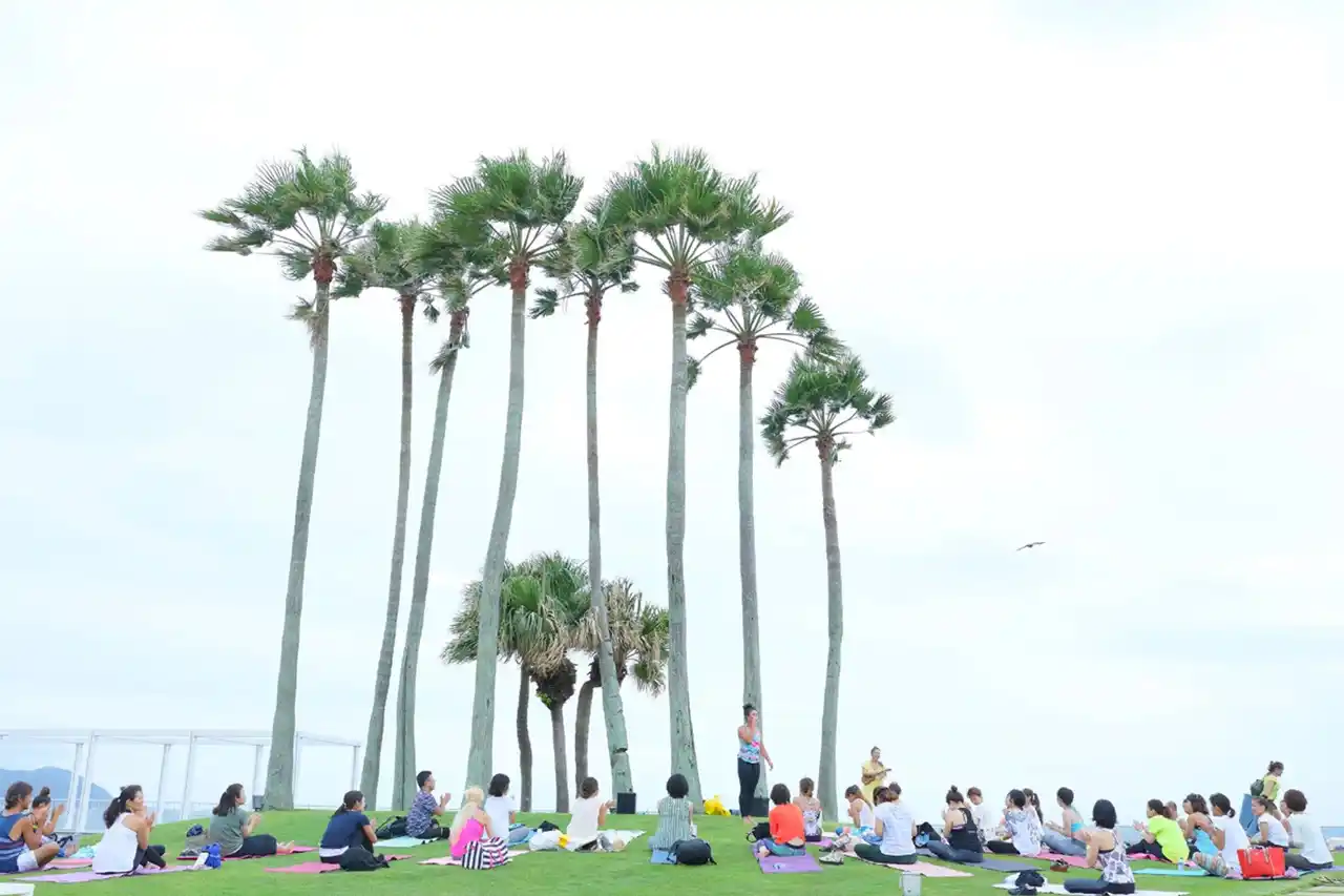 海の再生を願うドネーションとともに心身を解き放つ。海を目の前に、やわらかな芝の上で地球と同期するヨガ |