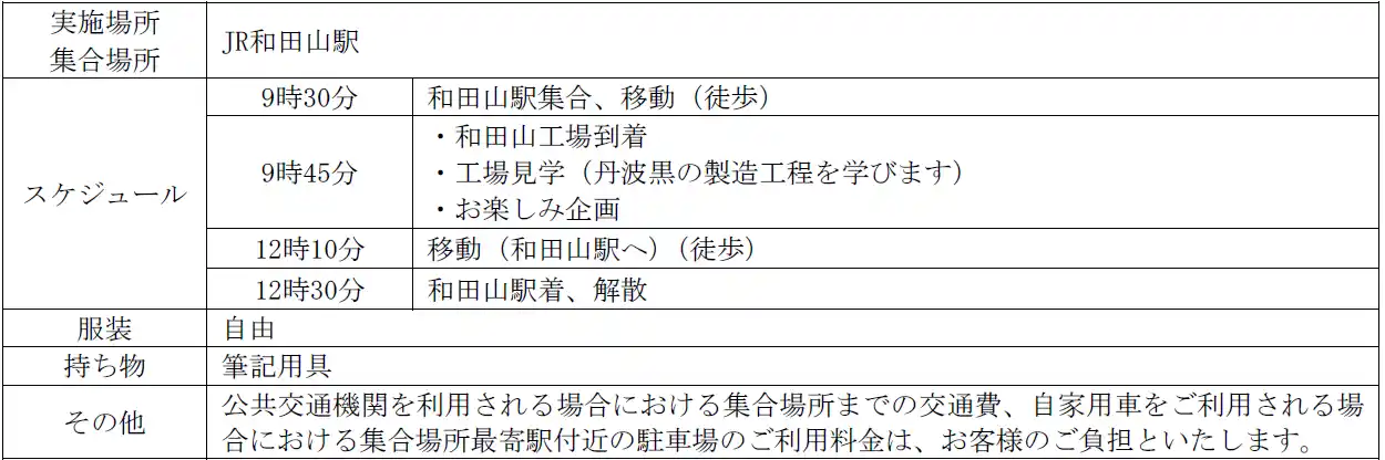 【2026年8月5日(水):工場見学(和田山工場)】(任意参加:希望者のみ) |