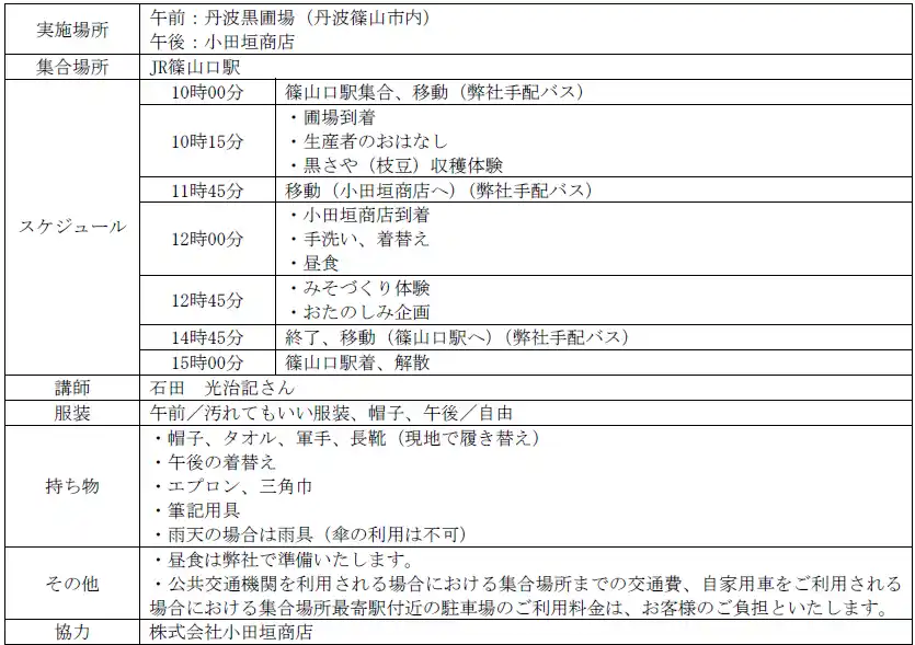 【2026年10月17日(土):黒さや(枝豆)収穫体験、みそづくり体験】 |