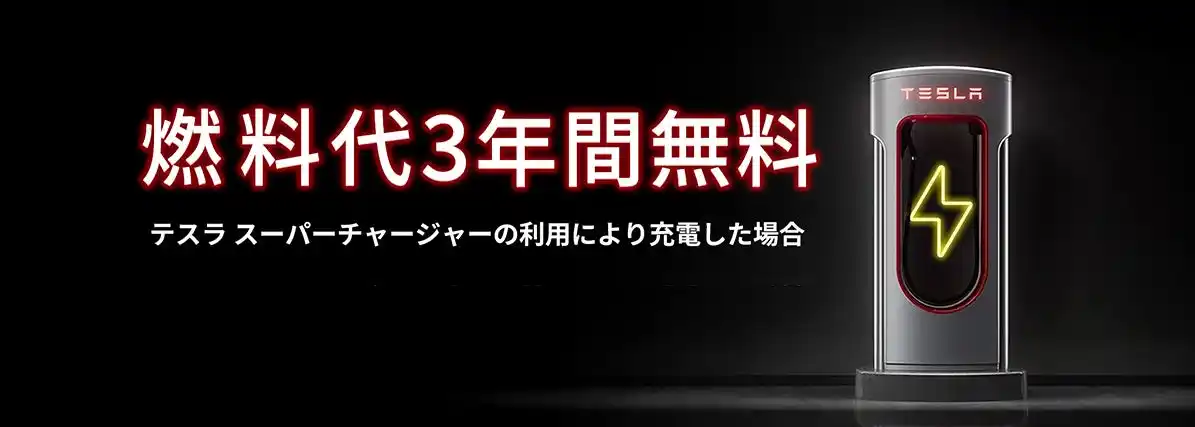 | この特典は、テスラの急速充電ネットワークを活用したテスラの利便性を最大限に活用したキャンペーンとなり、この期間にテスラを購入、納車された方は、ガソリン車との燃料費比較で数十万円相当の節約効果が見込まれます。また、3年間は燃料代が不要という経済的メリットを上回る安心感がセットになったテスラならではなユニークな取り組みです。 | |||||||||