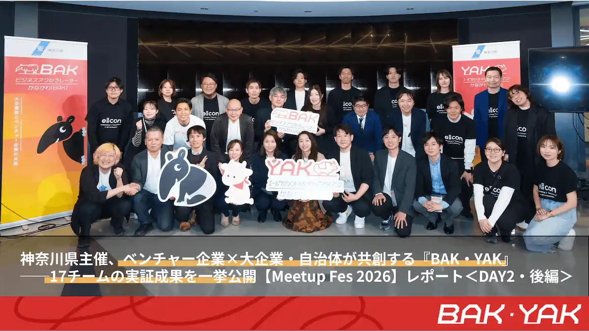 神奈川県主催、ベンチャー企業×大企業・自治体が共創する『BAK・YAK』──17チームの実証成果を一挙公開【Meetup Fes 2026】レポート |