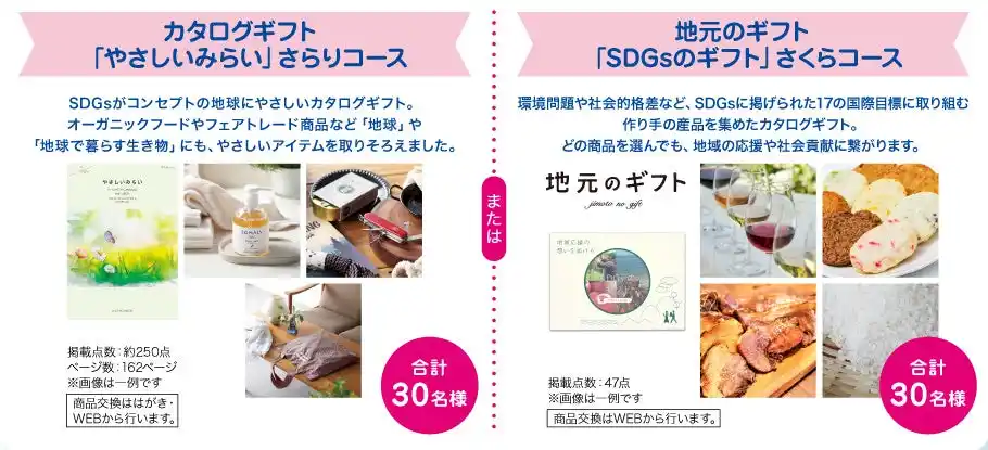 カタログギフト「やさしいみらい」さらりコース または 地元のギフト「SDGsのギフト」さくらコース |
