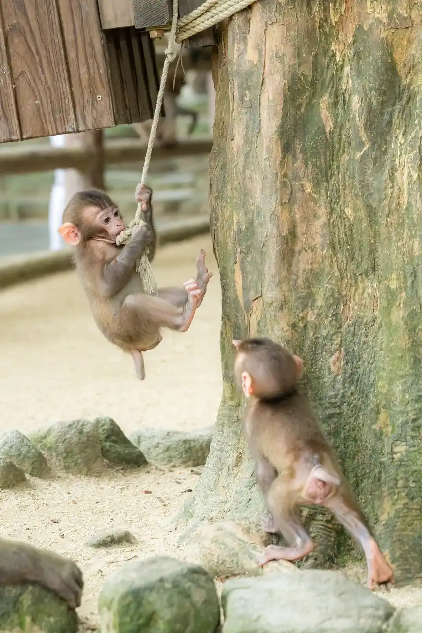 毎年出産シーズン(4月~8月頃)には約150頭の赤ちゃんザルが誕生します。かわいい赤ちゃんザルたちに会いに、ぜひお越しください。 |