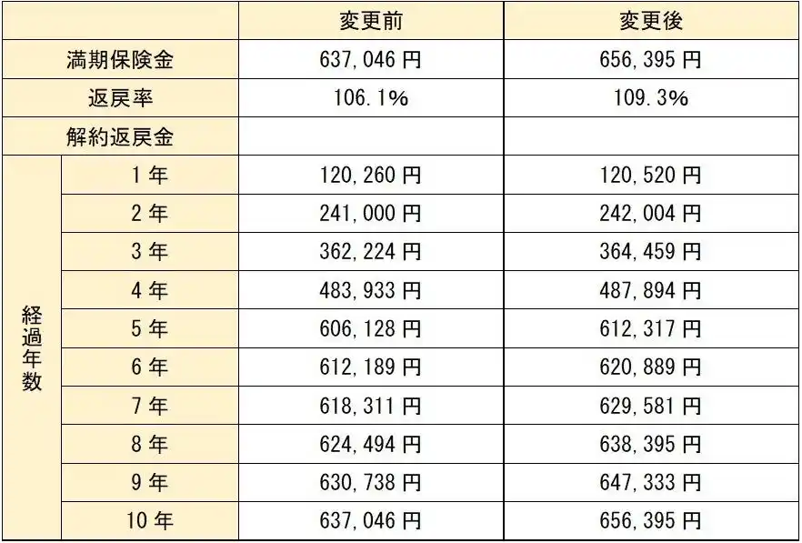 予定利率を見直し満期時の受取率を109.3%へ引き上げます。