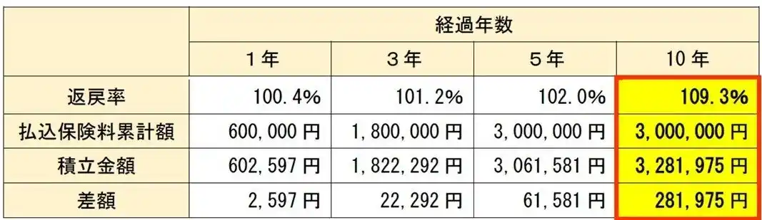 | 【受取額の具体例】月額保険料1万円の場合 | |||||||||
