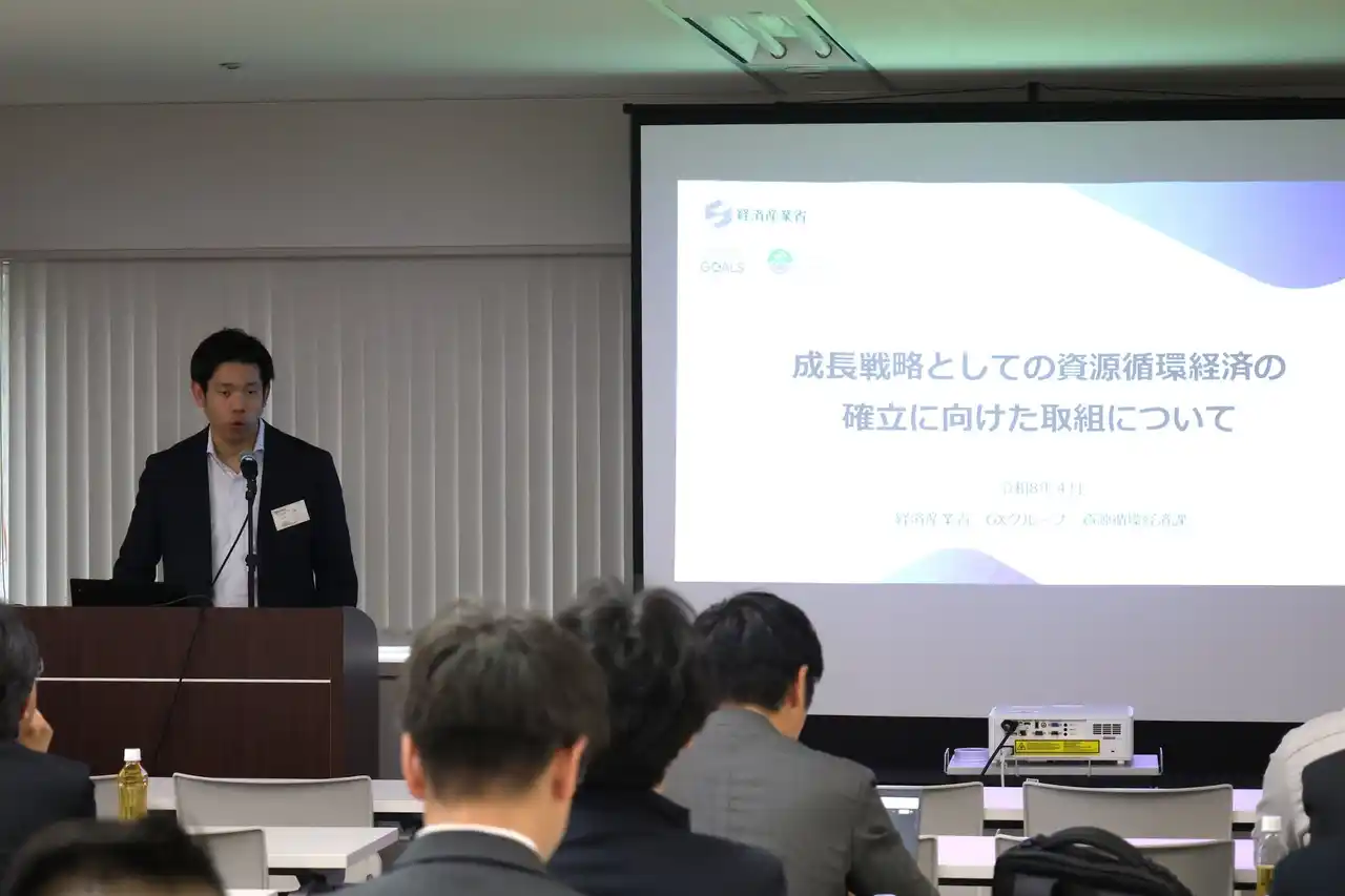 産官学連携、投資支援、ルール整備という三つの柱を軸に、資源循環が環境対策にとどまらず、経済安全保障や産業競争力の強化にもつながる分野であることが示され、あわせて多様な主体が参画する産官学連携プラットフォーム「サーキュラーパートナーズ」の取り組みについても紹介されました。 |