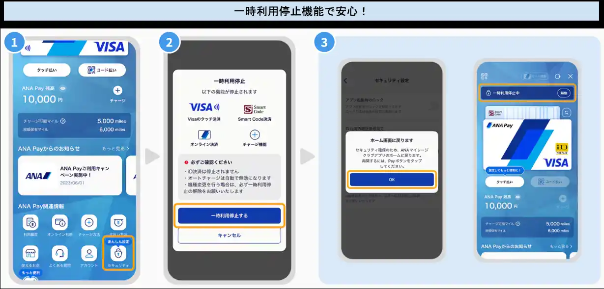 セキュリティへのご要望に対し、アプリ内からワンタップで利用を停止・再開できる機能を実装。万が一の紛失時にも、お客様自身で資産を守れる仕組みを整えました。 |
