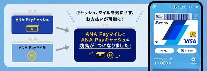 サービス開始当初は「ANA Payキャッシュ」と「ANA Payマイル」の2つに分かれていた残高を1つに統合。クレジットカードや銀行口座などからのチャージ分とマイルを組み合わせて支払えるようになり、1マイル単位での有効活用が可能になりました。 |