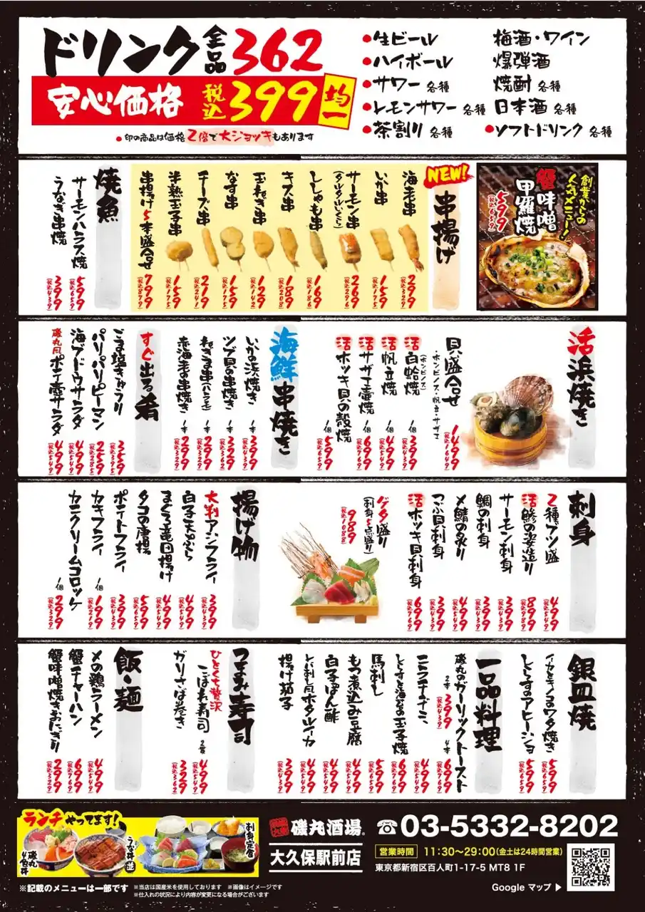 | 生まれ変わった磯丸酒場で、お得を1本釣り!みなさまのご来店を心よりお待ちしております | ||||||||||||||||||||||