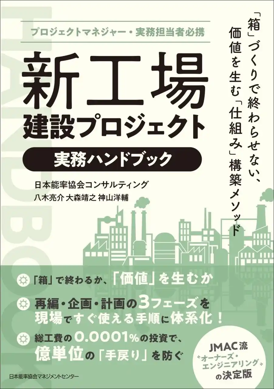 株式会社日本能率協会コンサルティング(本社:東京都港区・代表取締役社長:大谷羊平、以下JMAC)は、2026年5月1日、JMACのコンサルタントが執筆した書籍『新工場建設プロジェクト実務ハンドブック』を日本能率協会マネジメントセンター(以下、JMAM)より刊行いたします。 |