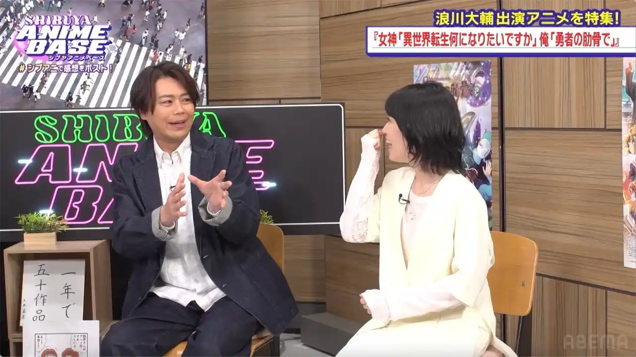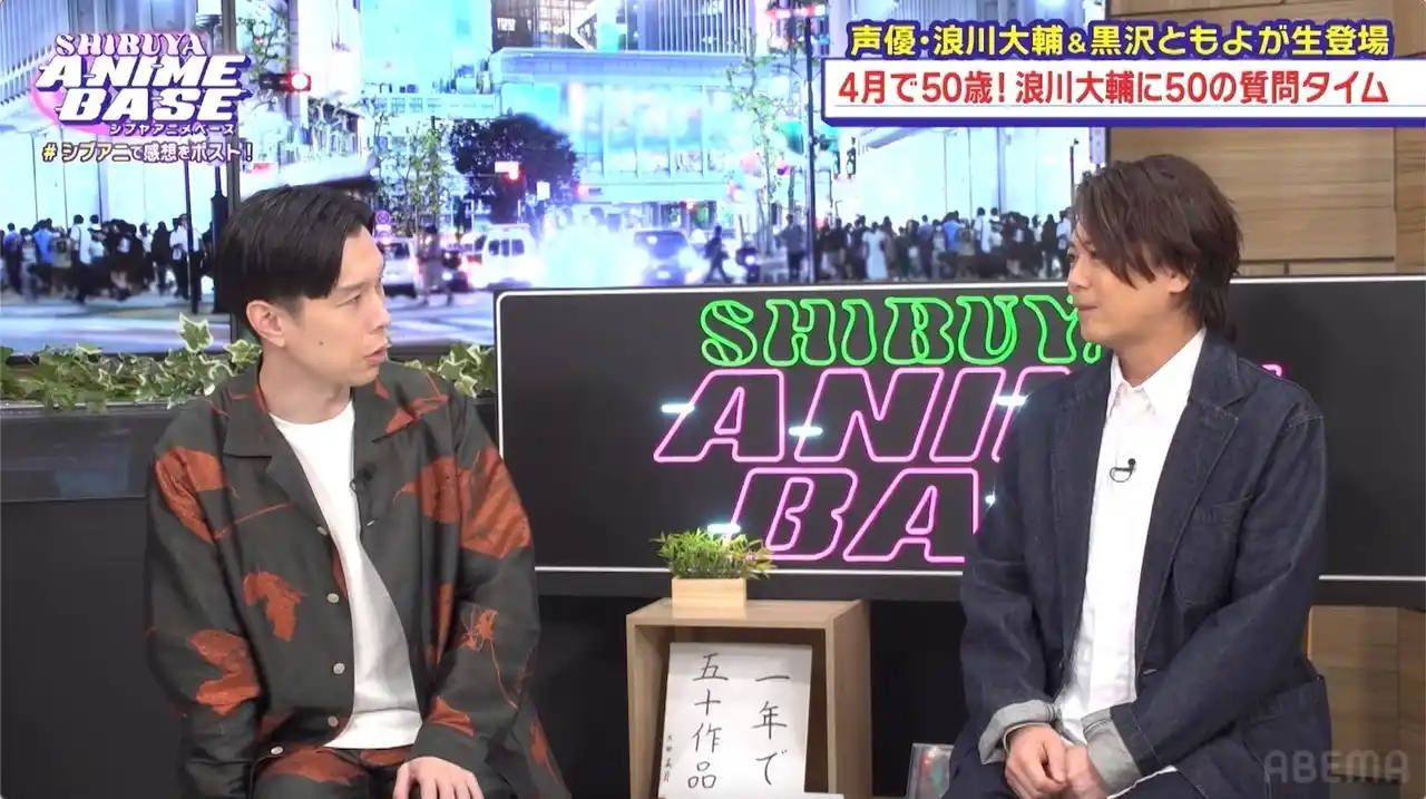 新しい未来のテレビ「ABEMA(アベマ)」は、「ABEMAアニメチャンネル」にて、2026年4月24日(金)夜9時~10時にわたり『SHIBUYA ANIME BASE(#シブアニ)』#83を生放送しました。今回はゲストに、声優の浪川大輔と黒沢ともよを迎え、春の新作アニメ情報や制作の裏側をたっぷりとお届けしました。 |