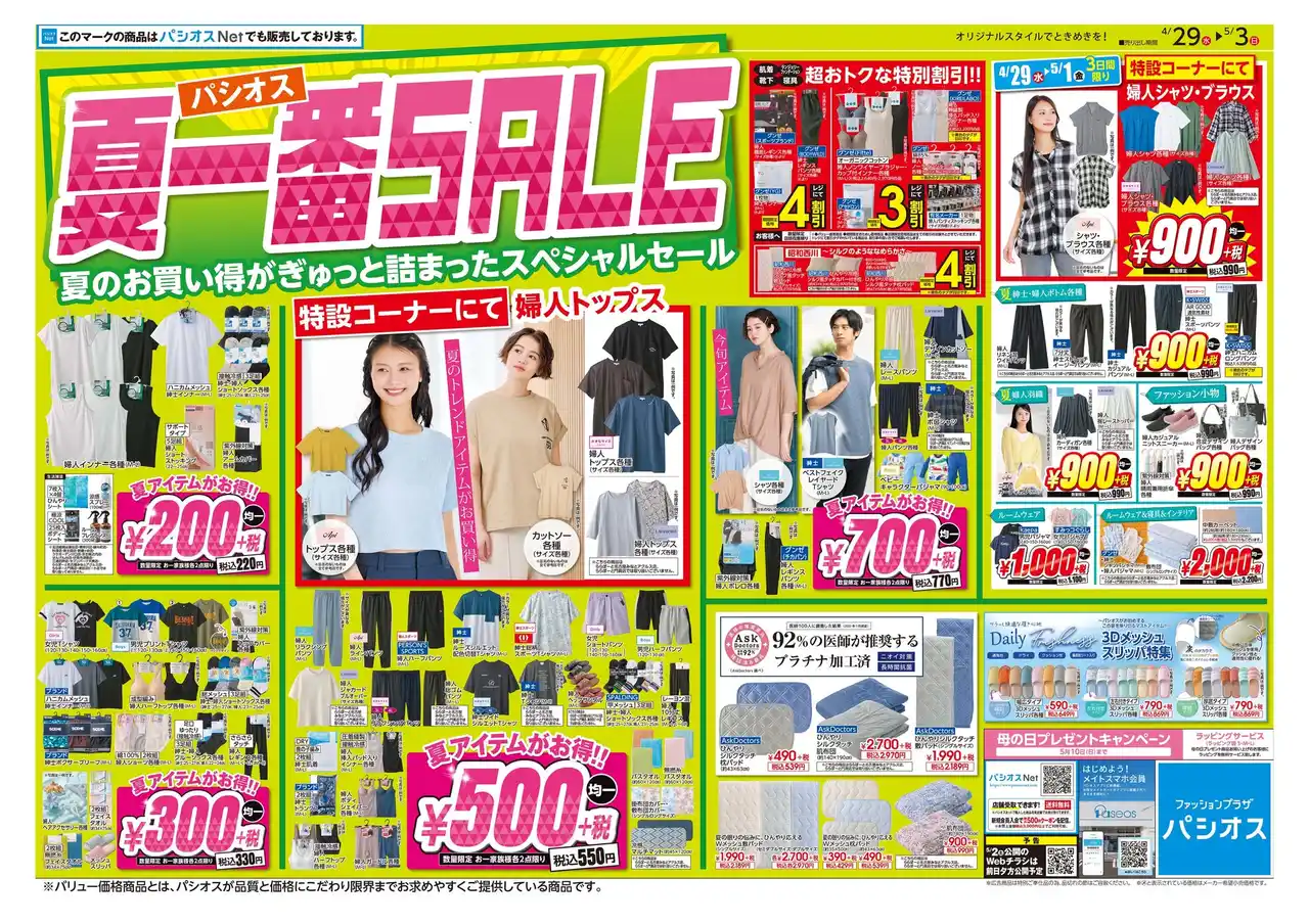 【夏一番SALE】開催のパシオスへぜひお越しください。 |