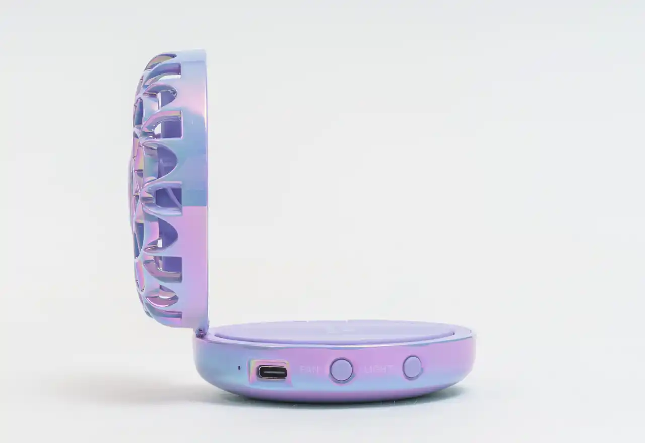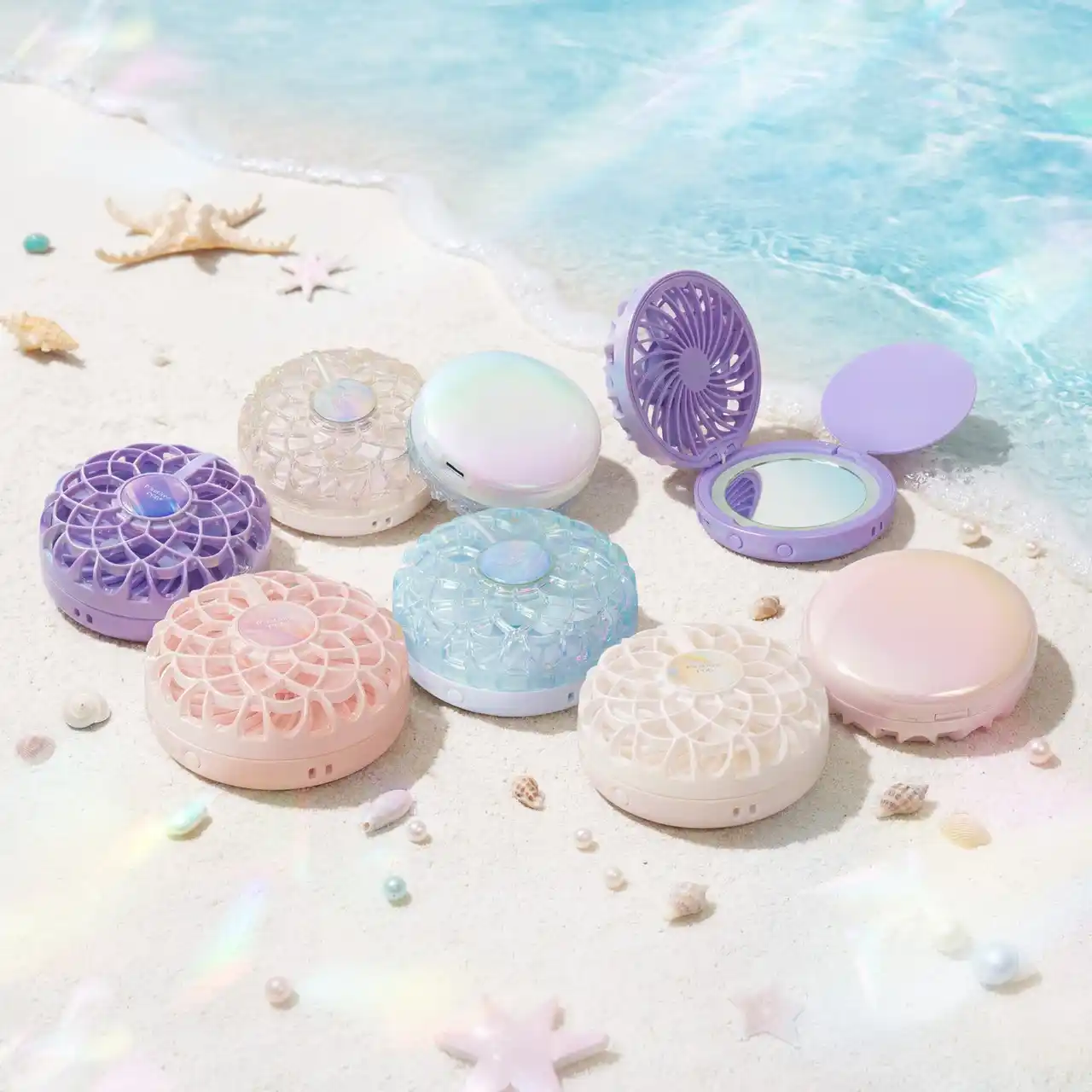 光を受けて表情を変えるオーロラの輝き。持ち歩くだけで気分が上がるコスメ型ハンディファン。 |