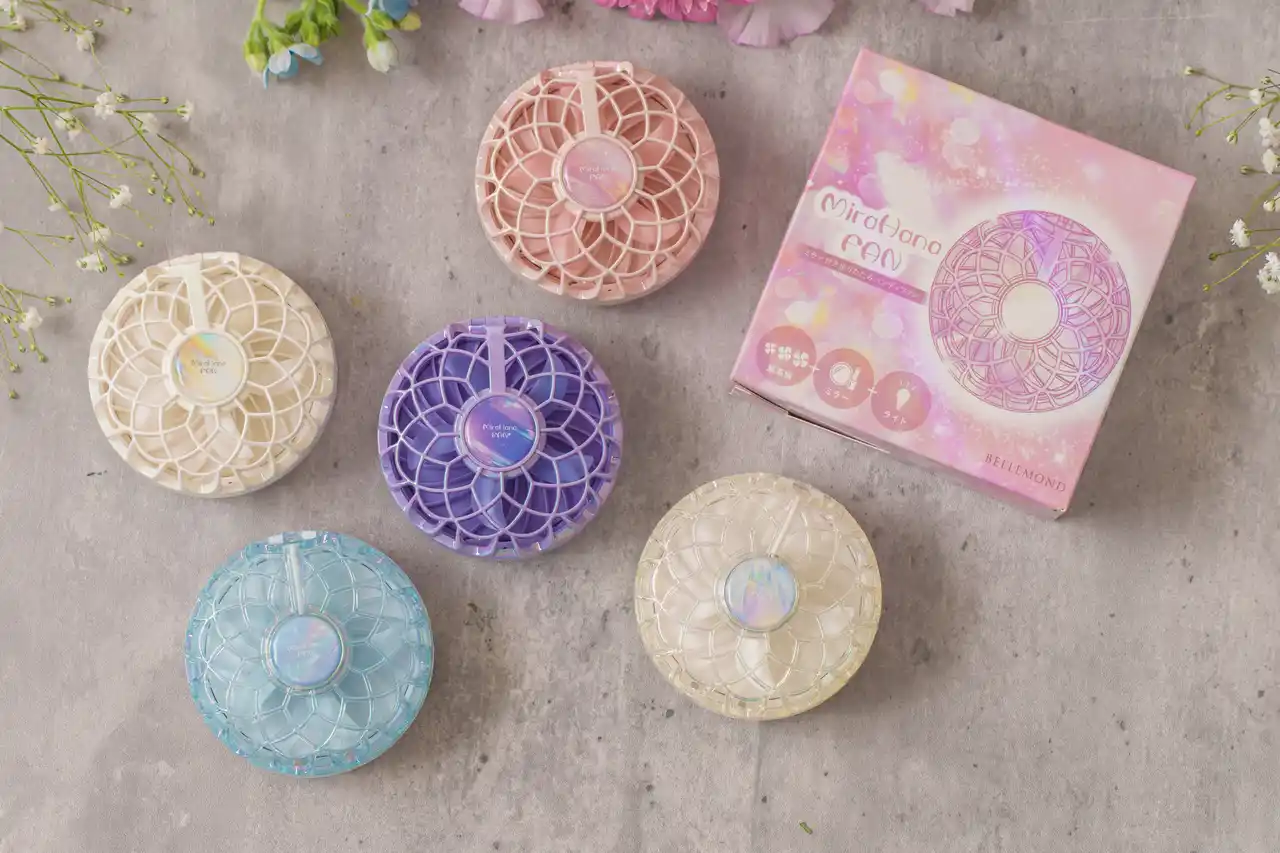 まるで“魔法のコンパクト”のような世界観をまとった「ミラハナファン」5色展開。 |