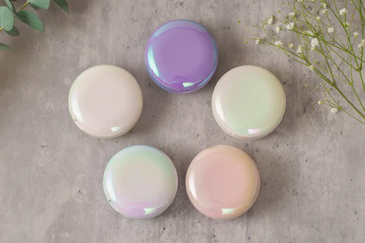 「ミラハナファン」は、オーロラのような艶感と丸みのあるフォルムに加え、リングライトがふわっと輝くことで、まるで“魔法のコンパクト”のような存在感を演出します。 |