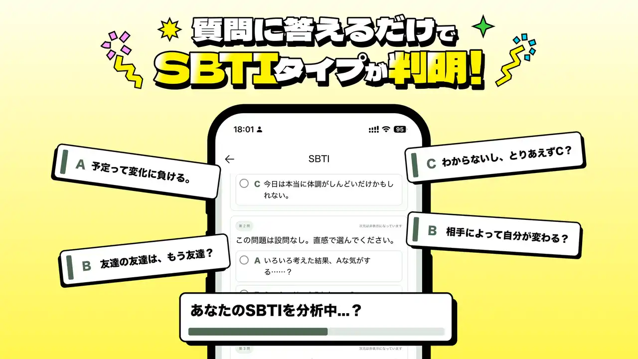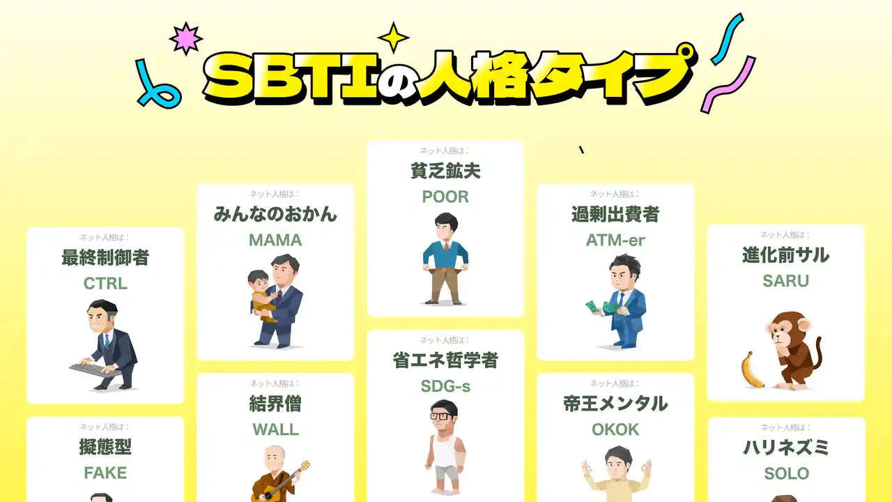 対してSBTIは、MBTIの概念をSNS用に応用した診断ツールです。全31問に回答することで、27種類の「ネット人格タイプ」のうち自分に当てはまるタイプを診断することができるエンタメ要素の強い内容となっています。 |
