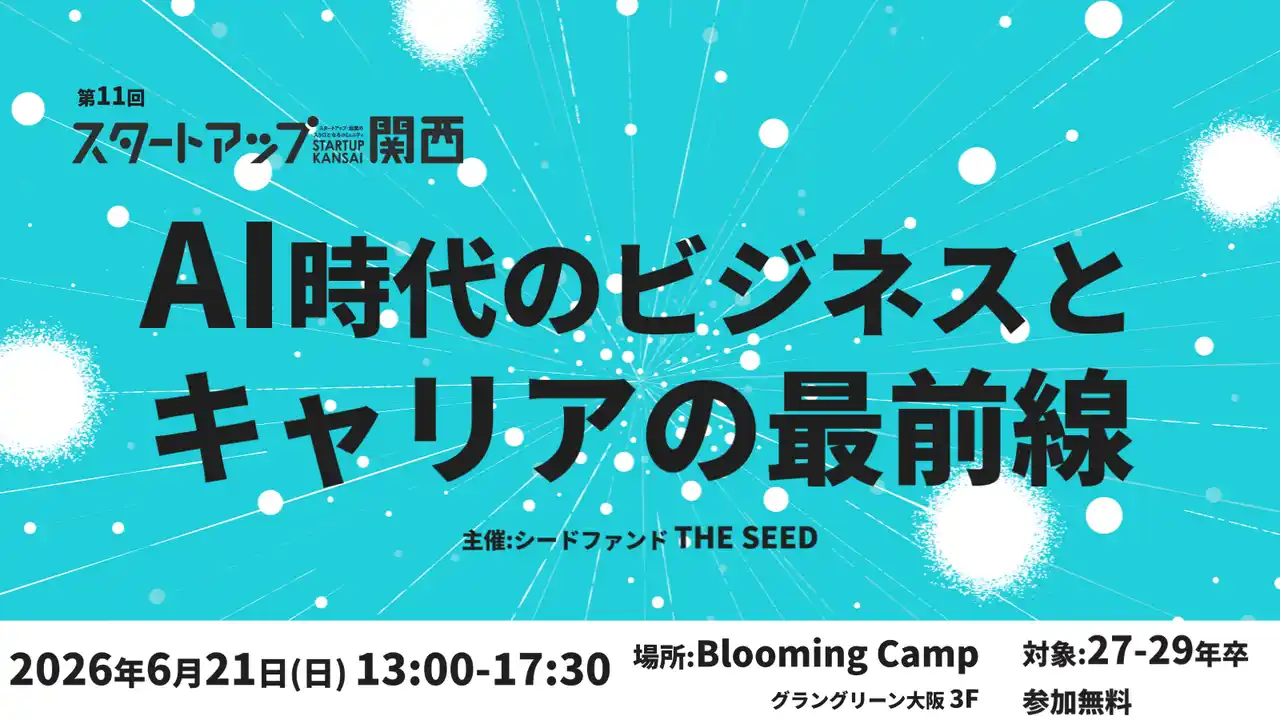 | プレシード・シードVC「THE SEED」(本社:東京都渋谷区、代表:廣澤 太紀)は、関西の学生・若手社会人を対象としたスタートアップイベント「スタートアップ関西」の第11回を、2026年6月21日(日)にグラングリーン大阪 JAM BASE 3F「Blooming Camp」にて開催します。 | |||
