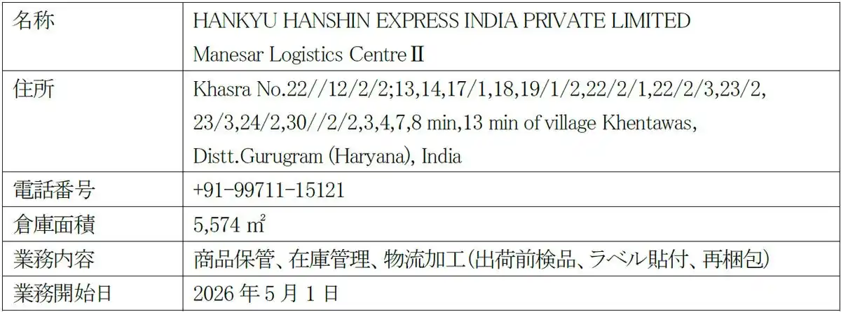 | 阪急阪神エクスプレス(本社:大阪市北区 代表取締役社長:吉本 敏)のインド法人であるHANKYU HANSHIN EXPRESS INDIA PRIVATE LIMITED(本社:デリー)は、デリー近郊の既存倉庫であるマネサールロジスティクスセンターIIを増床し、5月1日より業務を開始します。同倉庫はインディラ・ガンディー国際空港から約40kmの好立地に位置し、日系企業が多数進出しているマネサール工業団地にも至近です。 | |||