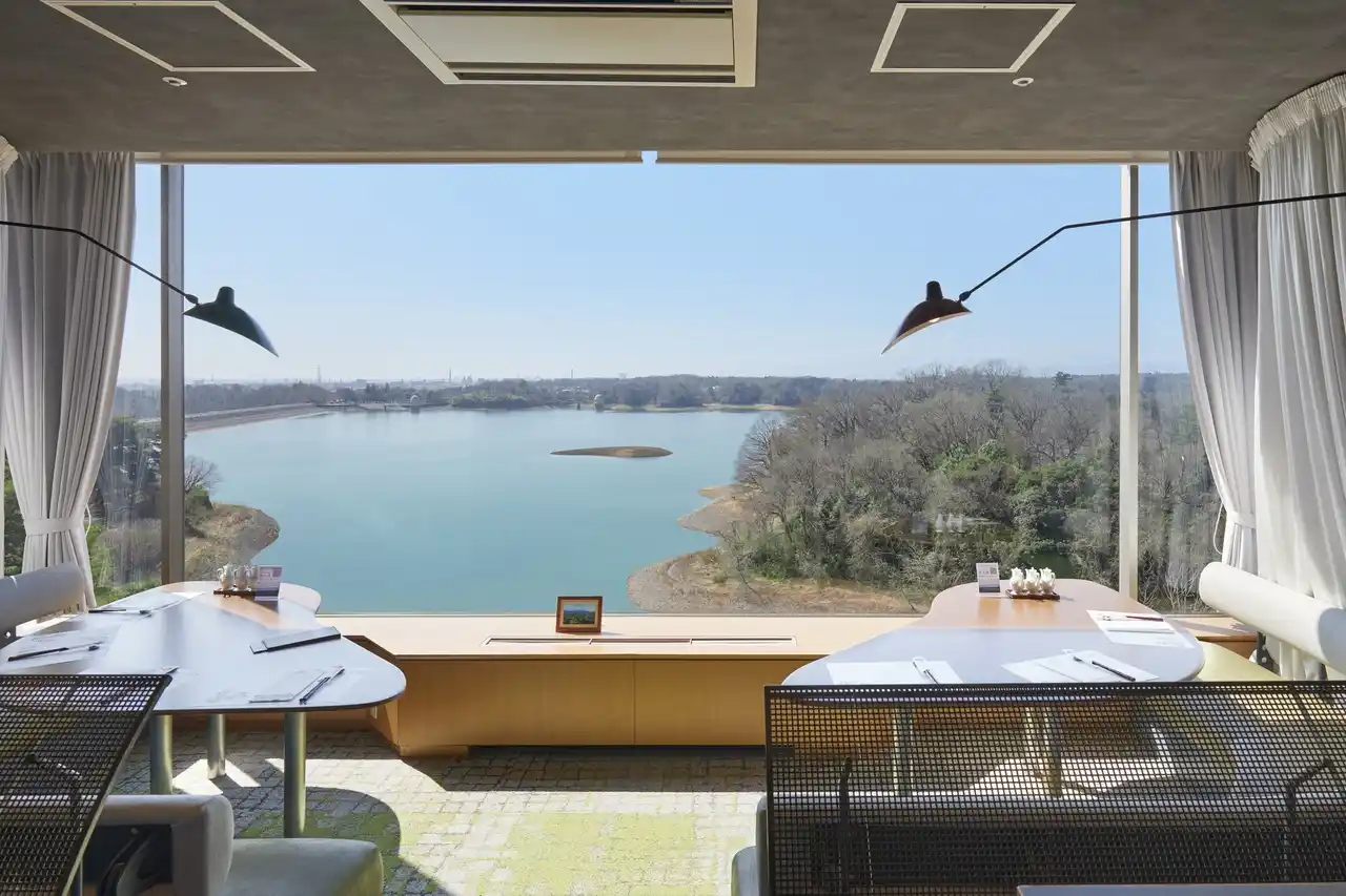 全室レイクビューの客室からは、穏やかな多摩湖を一望。晴れた日には遠く富士山も望め、刻々と移ろう景色と共に心ほどけるひとときをお過ごしいただけます。館内には「レストラン 天外天」、広々とした石造りの大浴場「狭山の茶湯」、サウナなどを備え、四季折々の自然と湖畔の風景もお楽しみいただけます。 |