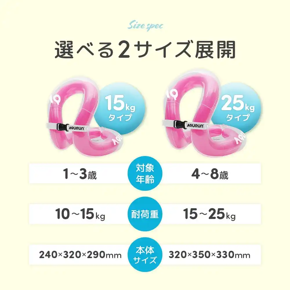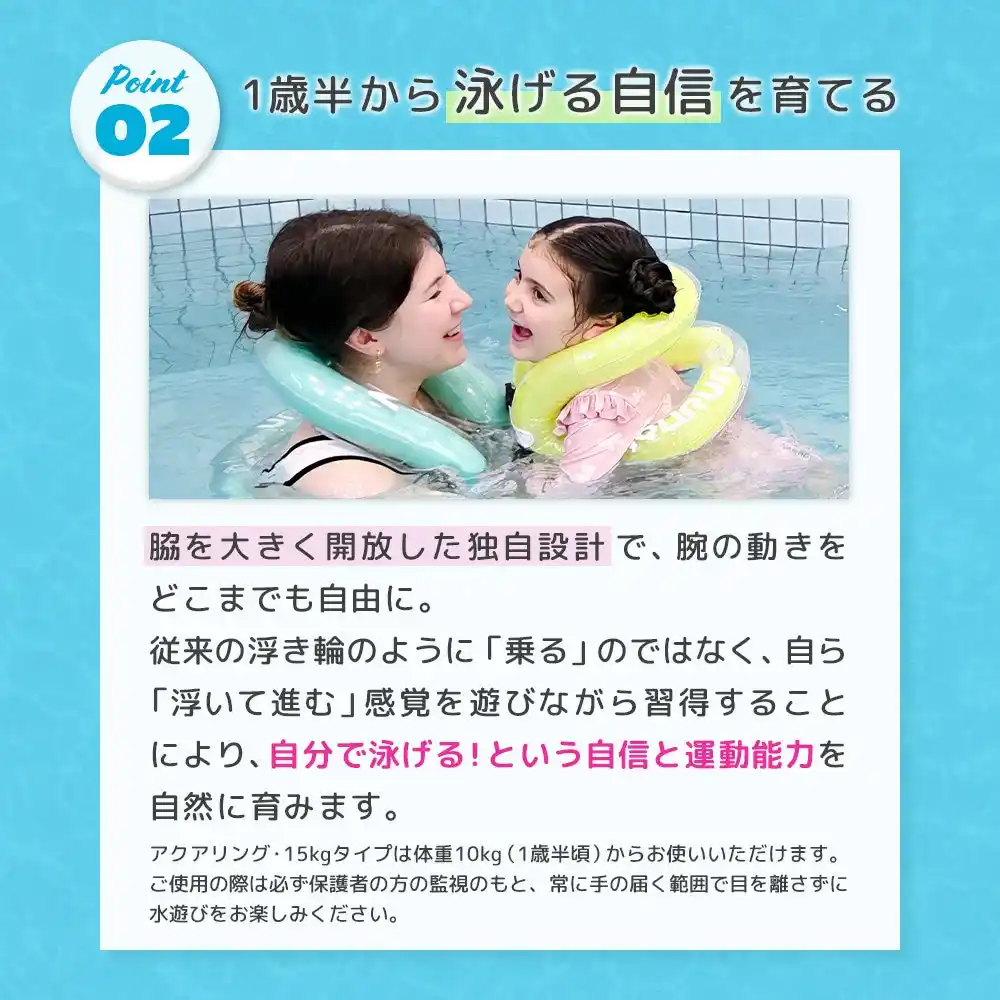 ※アクアリング・15kgタイプは体重10kg(1歳半頃)からお使いいただけます。 |