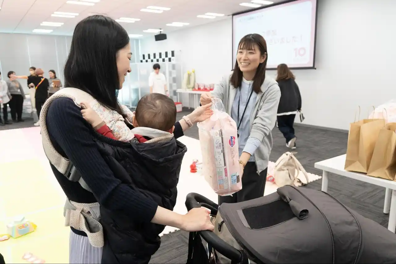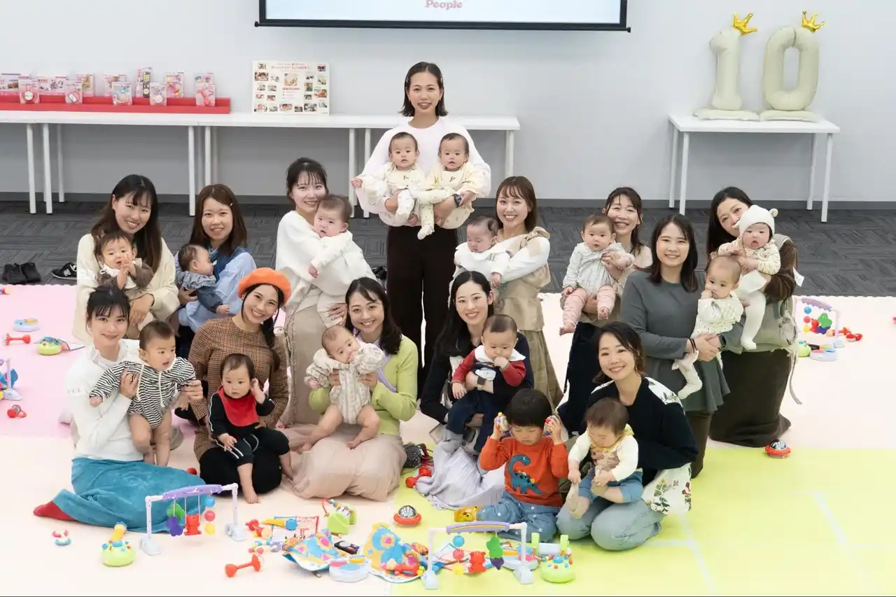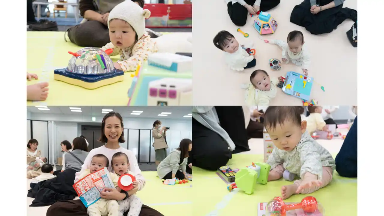 | 合間には、自由な交流タイムを設けました。会場に設置されたフォトスポットでお子さまとの記念撮影を楽しんだり、月齢が近い赤ちゃん同士が一緒に遊んだり、ママたちが子育て情報を交換したりと、オフラインならではのあたたかい交流の場となりました。 | |||