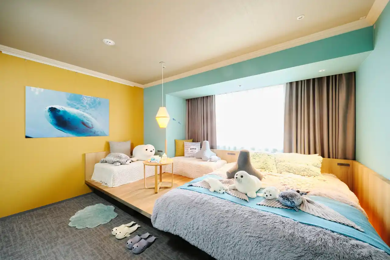 | 旭山動物園で3月に生まれたアザラシの赤ちゃんの誕生に合わせて、アザラシをテーマにした新コンセプトルームを2部屋限定で先行販売。シロクマルーム・ペンギンルーム・えぞひぐまルームに続き、客室の随所にアザラシのモチーフが散りばめられたお部屋です。まるでアザラシに囲まれて過ごすような滞在体験を提供します。 | |||||||||