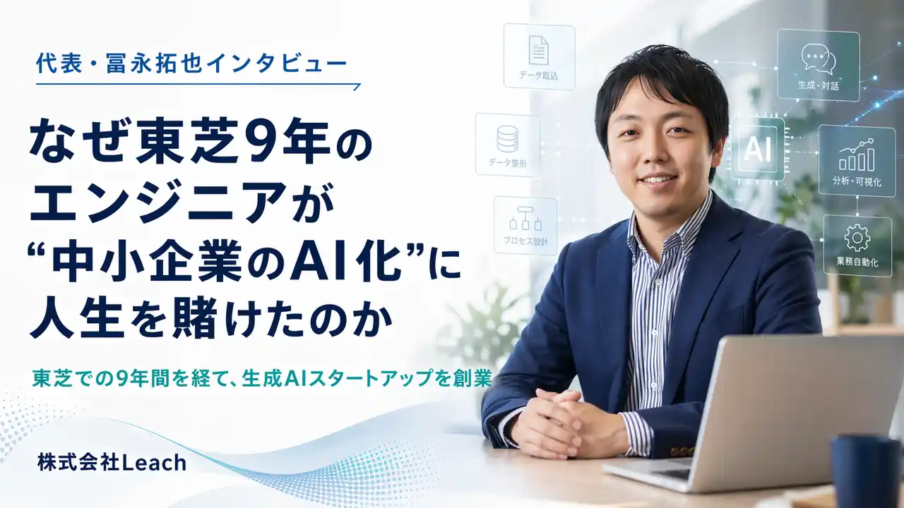 冨永:大企業にいてはこの問題は解けない。中小企業の現場に入り込んで、生成AIの力で一つひとつの業務を変えていく。2024年11月13日に株式会社Leachを創業しました。 |