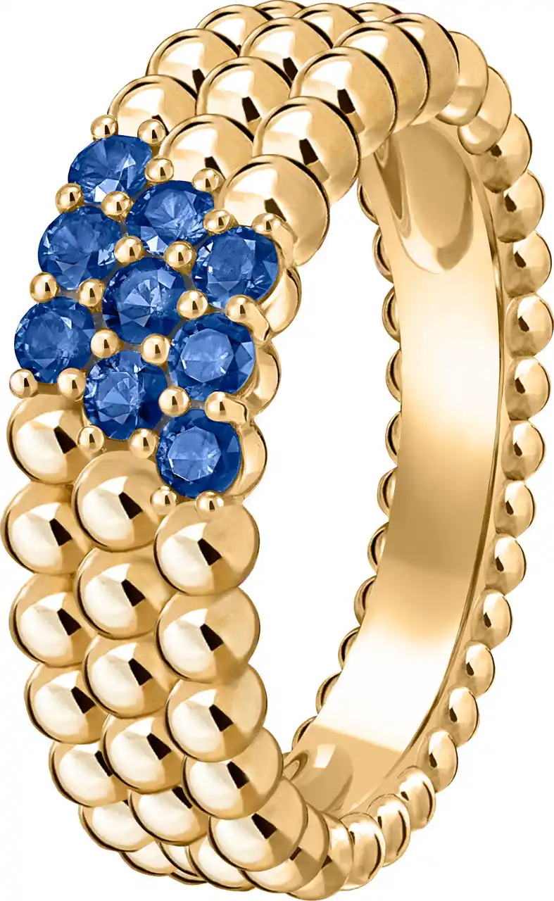 ペルレ クルール リング、3連モデル(イエローゴールド、サファイア) |