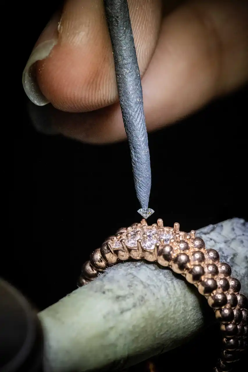 リングへのダイヤモンドのセッティング |