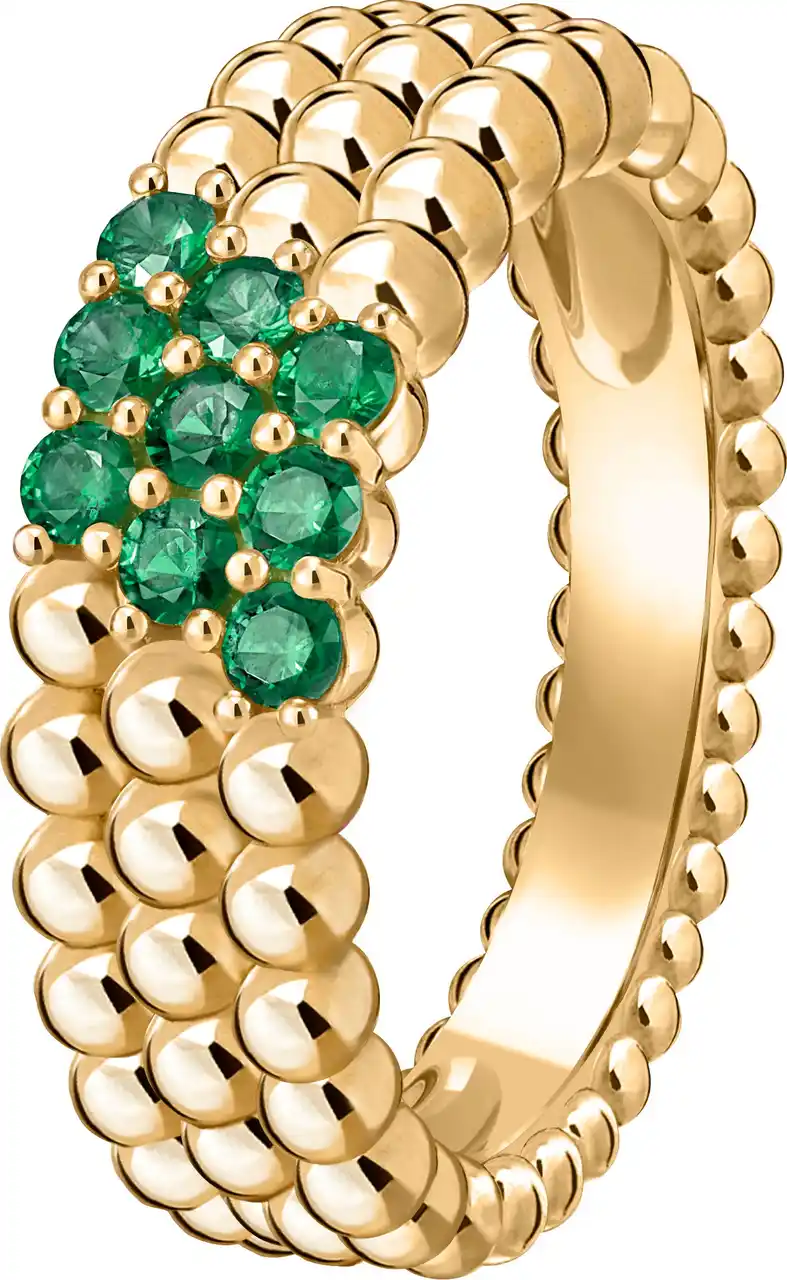 ペルレ クルール リング、3連モデル(イエローゴールド、エメラルド) |