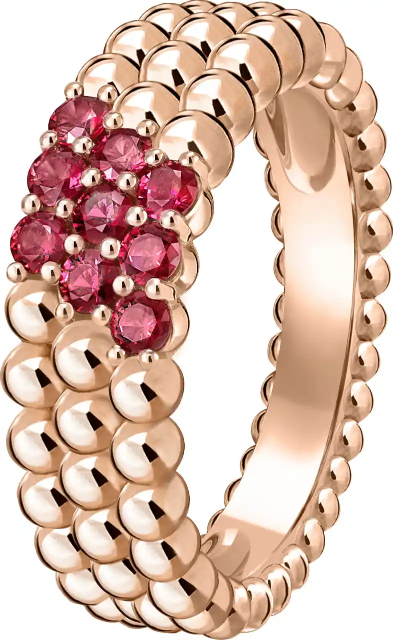 「ペルレ クルール リング、3連モデル」(ローズゴールド、ルビー)¥1,491,600 (税込) |