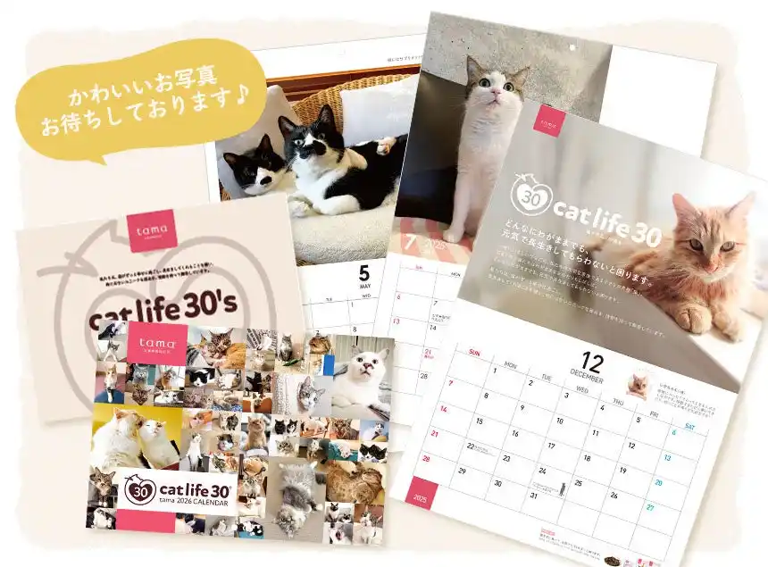 2024年から始まった、tamaのカレンダーは、皆さまのお楽しみのひとつになりつつあるのではないでしょうか。そんなtamaのカレンダーを彩ってくれるのは、もちろん、日々を一緒に過ごしているかわいい猫たち。ちょっと気が早い気もしますが、2027年のカレンダーも、皆さまの暮らしのなかにいる猫の写真でぎゅっと埋めつくしたいと考えています。 |