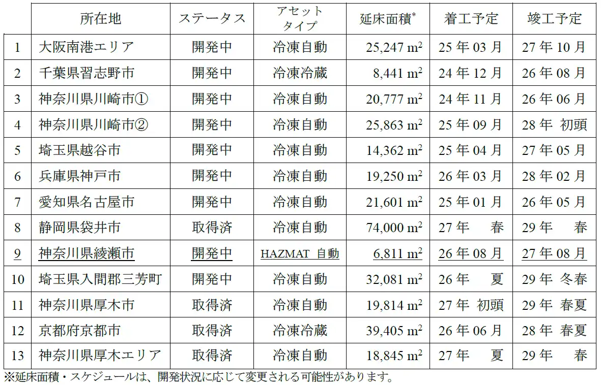 ■物流施設開発予定物件一覧 |