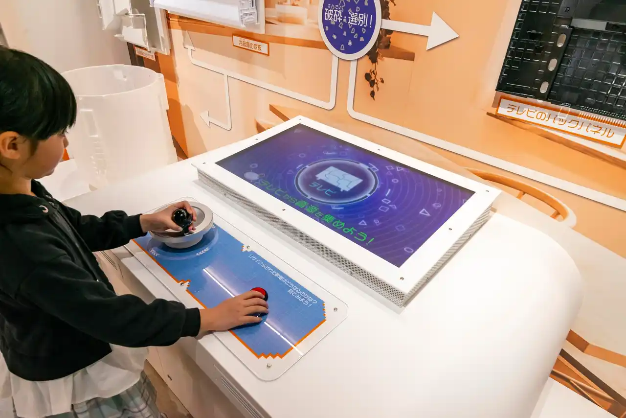 本展示は、楽しく体験しながら家電リサイクルのあゆみや制度の意義、リサイクル技術について学び、理解を深められる構成となっています。 |