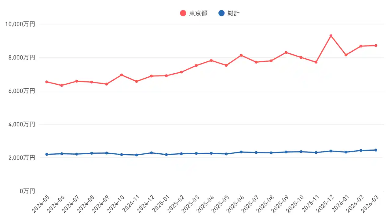 本調査では、東京の急激な価格高騰が全国平均を大きく牽引する一方で、地方では下落傾向が見られるなど、不動産市場における「二極化」が鮮明となった実態を報告いたします。